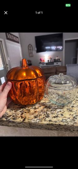 Pair Of Glass Pumpkin Canisters $15College Station, TX