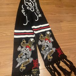 Vtg Ed Hardy Christian Audigier Black Skull Crossbone Knit Fringe 68"X8" Scarf $25Wilmington, CA