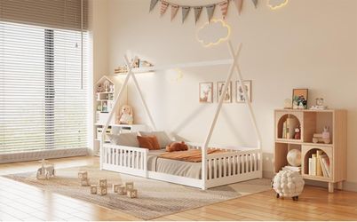 🔥🔥 TWIN Size Wood House Bed with Fence, White$85Columbus, OH