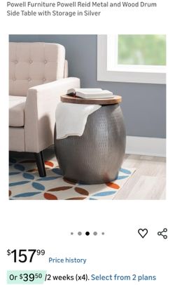 Powell Furniture Powell Reid Metal and Wood Drum Side Table with Storage in Silver$80Columbus, OH