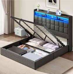 *Read if interested*🔥 FULL SIZE Platform Bed Frame w/ LED, Upholstered Headboard, USB , Storage$60Bexley, OH