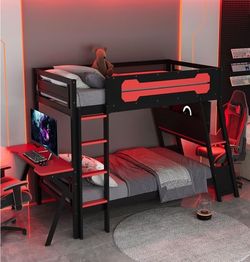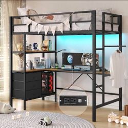 π₯π₯Full Size Loft Bed with L-Shaped Desk, LED Lights,Charging Station, Industrial Heavy Duty$150Columbus, OH