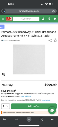 Sound Panels - Primacoustic Broadway 2" Thick Broadbande Acoustic Panel 48 x 48" (White, 3-Pack)$300Costa Mesa, CA