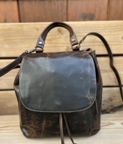 New, Distressed leather Carryall Bucket backpack, cognac$199Orange, CA