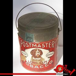 1905 PostMaster St. Bernard Tobacco Pail Can Tin • John Adams Tax & Union Stamps! • Schmitt Brothers Milwaukee Wisconsin $315Big Bend, WI
