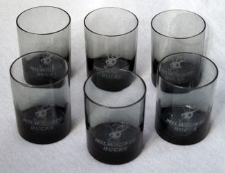 RARE 1970's Milwaukee Bucks Mecca Arena V.I.P. Lounge Etched Bango Smoked Whiskey Glasses! • Set of 6 • MINT shape!$265Big Bend, WI