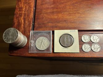 Coin Collection(19 Kennedy Half Dollars, 1946 Walking Liberty 1/2 Dollar, 1853 One Cent Coin, 4 Mercury Dimes 1942$100Avon, MA