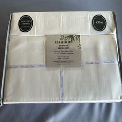 king bamboo sheet set Off-white. Luxury 1 Flat, 1 Fitted Sheet 4 Pillow Cases . Fits up to 16” mattresses $74Pembroke Pines, FL