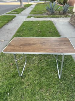 48*24*27 portable folding table with a faux wood grain top and aluminum legs. $35Artesia, CA