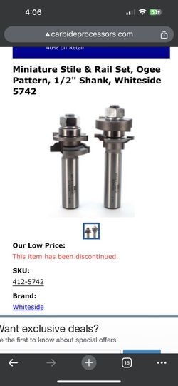 $90Whiteside Router Bit 5742 NEW paid$119$90Barstow, CA