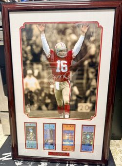 Joe Montana 16x20 Signed With Reprint Super Bowl Ticket $500San Leandro, CA