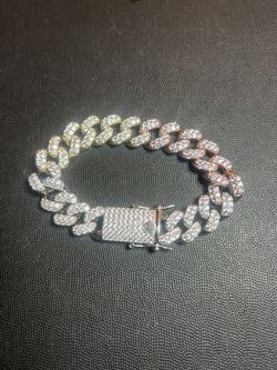 925 Sterling Silver Iced Cuban Link Tricolor 97g Lab Diamond Simulant 8.5” Heavy$550San Diego, CA