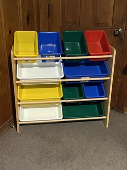 Kids' Toy Storage Organizer with 11 Plastic Bins - Natural Wood with Brightly Colored Bins - 10.9" D x 33.6" W x 31.1" H$45Fort Worth, TX
