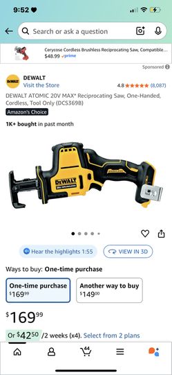 DEWALT Reciprocating Saw, $120Dearborn, MI