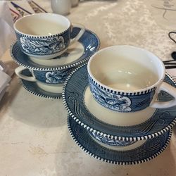 Currier And Ives Vintage lot of 4 Tea Cup And 4 Saucer blue & white$80Lindsay, CA