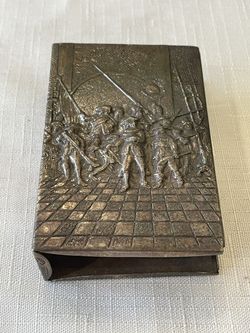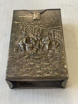Vintage silver-plated repoussé cigarette case with a historical scene.$70Anaheim, CA