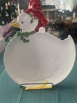 Fitz and Floyd Christmas duck-shaped ceramic serving platter with Santa hat. 12” X 13”$35Anaheim, CA