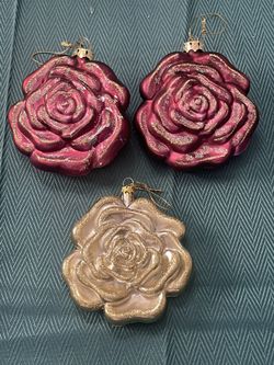 Vintage glass rose-shaped Christmas ornaments with glitter accents.$15Anaheim, CA
