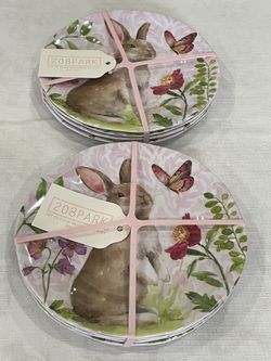 2 Sets Of Four 208 Park Melamine 9” Spring Bunny Rabbit Plates. 8 Total Plates$25Anaheim, CA