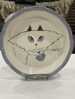 Hand-painted ceramic pie plate by artist Kulibert featuring a stylized cat. 10.5”$45Anaheim, CA
