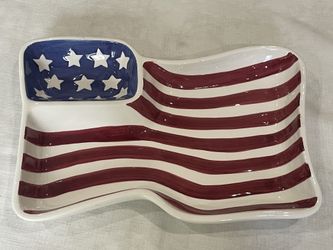 Ceramic American flag shaped chip and dip platter by Boston Warehouse. 14.5”x 10”$30Anaheim, CA