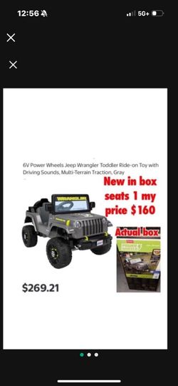 New in box 6V Power Wheels Jeep Wrangler Toddler Ride-on Toy with Driving Sounds, Multi-Terrain Traction, Gray $160 firm cash only east Palmdale $160Palmdale, CA