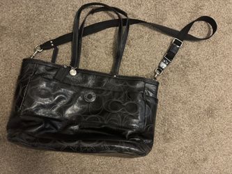 Coach Patent Leather Shiny Black Tote Diaper Bag Silver satin lined Pockets$110Windermere, FL