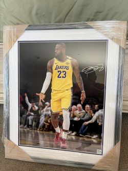 LA LAKERS LEBRON JAMES SIGNED AUTO PICTURE 22x26 IN FRAME FROM LAKERS GAME DAY AUCTION COA$1,500Claremont, CA