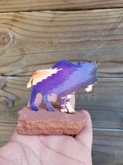 small metal bison artsy statue on Stone$10Long Beach, CA