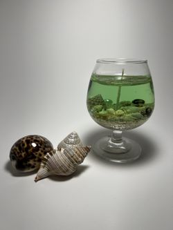 Ocean-Themed Gel Candle In Brandy Glass - Scented & Handcrafted Gift (Green)$15Belle Mead, NJ