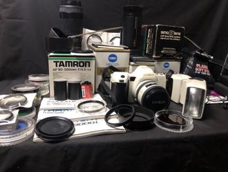 Minolta Maxxum 8000i Limited Edition MIR Space Station Pearl White Set with all additional pictured items$525Farmington, MI