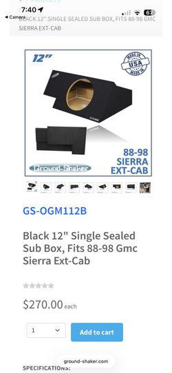 Black 12" Single Sealed Sub Box, Fits 88-98 Gmc Sierra Ext-Cab$125Visalia, CA