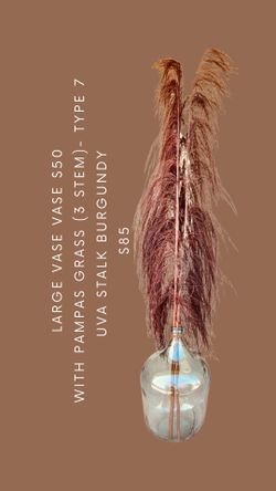 Large vase vase $50 with PAMPAS GRASS (3 STEM)- TYPE 7 UVA STALK burgundy $85$85Oak Glen, CA