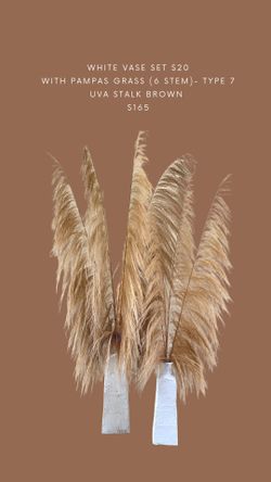 White vase set $20 with PAMPAS GRASS (6 STEM)- TYPE 7 UVA STALK BROWN $165$20Oak Glen, CA