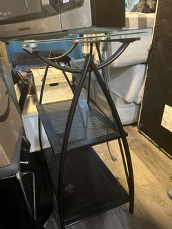 Gray Glass Chrome And Black Coffee Table With Swinging Bottom Tray $40Pompano Beach, FL