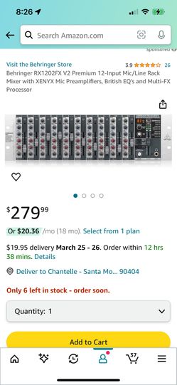 Behringer RX1202FX V2 Premium 12-Input Mic/Line Rack Mixer $150West Los Angeles, CA