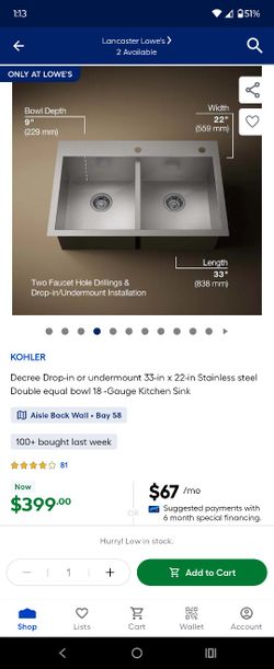 Kohler Decree drop in sink 22x33x9 in.$300Lancaster, CA