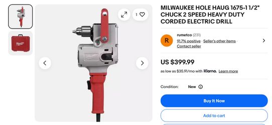 Milwaukee Hole Haug $250Moreno Valley, CA