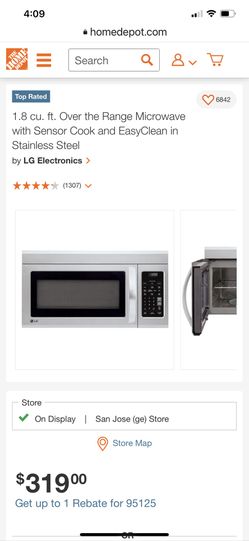 Top Rated 1.8 cu. ft. LG Over the Range Microwave with Sensor Cook and EasyClean in Stainless Steel$199San Jose, CA