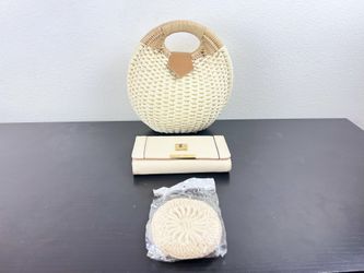 (3 Piece) Women Straw Clutch Handbag, Leather Trifold Wallet and Coin Purse Combo$45Juárez, Chihuahua
