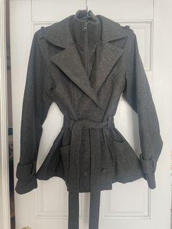 Woman Grey Wool Trench Coat with Belt $85Oak Park, IL