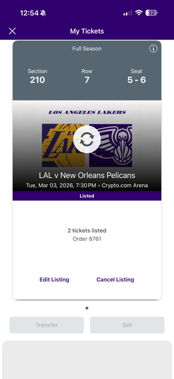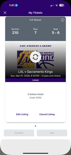 Soldlakers vs kings sunday march 1st$110La Habra Heights, CA