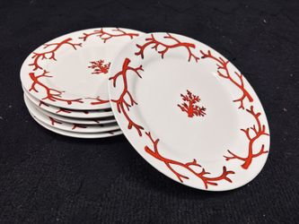 Set of 6 Z Gallerie dinner plates with a white porcelain base and bold red coral design around the rim and center. Coastal / nautical style that looks$40Seal Beach, CA