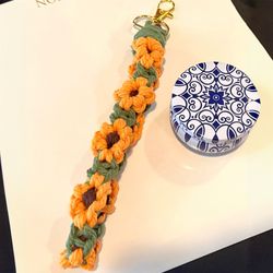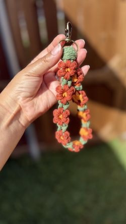 Handmade Gold Red Leaf Daisy Macrame Keychain Wristlet$15Garland, TX