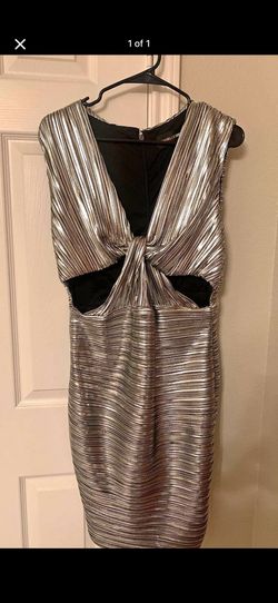 NEW Gabrielle Union Silver Metalic Illusion Dress Zip Back Lined Size L$30Garland, TX
