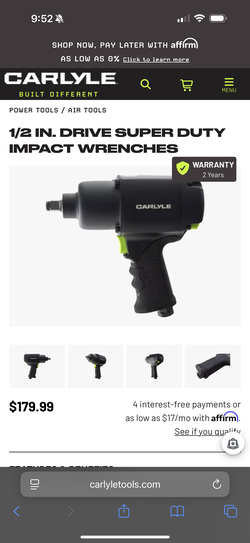 BRAND NEW 1/2” Super Duty Carlyle Air Impact Wrench $120firm Fcfs$120Port Richey, FL
