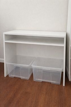 Modern white office / craft desk with built-in open shelving.$70Burbank, CA