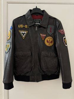 NWT Guess Patched Aviator Leather Bomber Jacket, Sz M $300Fair Oaks, CA