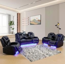 Black Faux Leather Reclining Sofa Set With Cup Holder $1,500Kent, WA