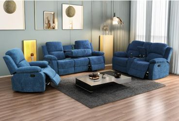 3-piece Reclining Living room Set On Blue Fabric $1,500Kent, WA